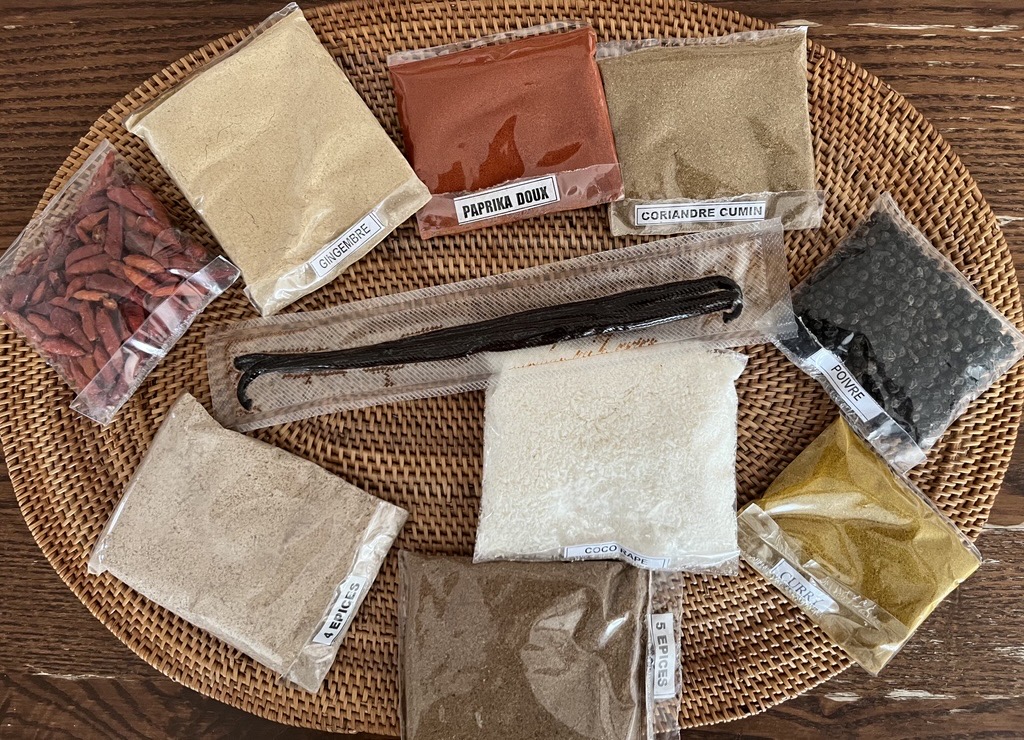 Au fil des voyages, nous ramenons de l'artisanat, des épices et de la vanille bourbon, à vendre au profit de l'Association Manorina.